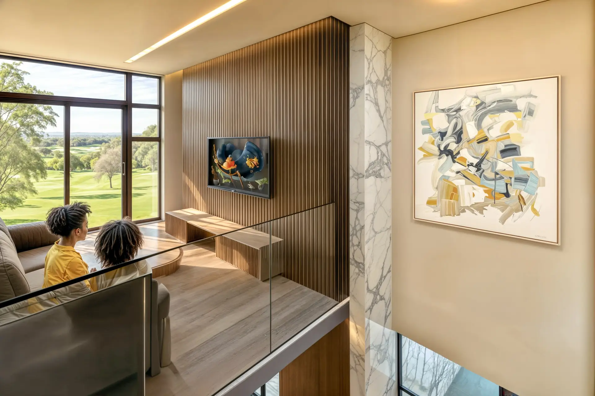 The Type A Lumen Residence forms part of an exclusive collection of four bespoke luxury homes within The Terraces at Steyn City, offering 335m² of refined living shaped by clarity, natural light and considered detailing. Minimalist forms, off white walls, warm timber screens and full height glazing create a calm, contemporary exterior that opens to uninterrupted views over the estate. Inside, generous volumes, soft textures and a curated palette of timber and marble establish an atmosphere of understated sophistication, with seamless connections between living spaces and private bedroom suites designed as serene retreats. Floating balconies, sculpted landscaping and precise proportions reinforce the crafted nature of this limited series residence, where luxury is expressed through simplicity, balance and timeless architectural intent.