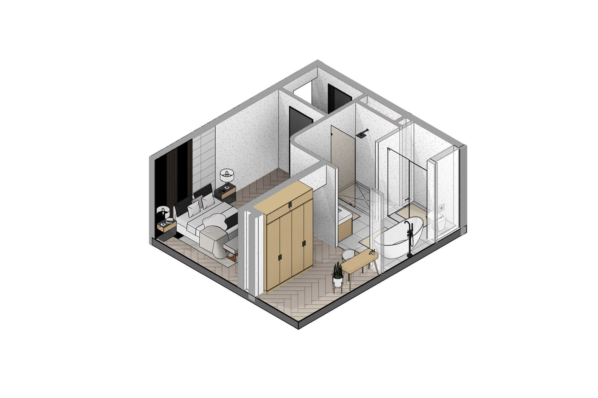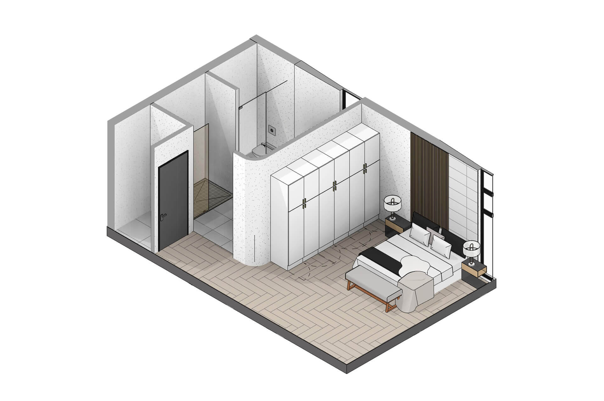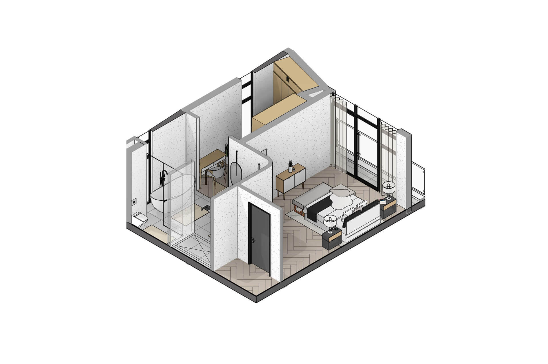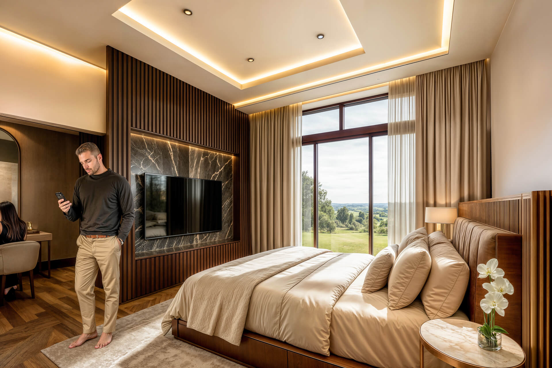 Inside, the home is shaped by generous proportions, refined detailing and a sophisticated palette of timber, stone and soft neutral tones. Open plan living flows effortlessly onto the covered patio, while the kitchen acts as a functional and elegant centrepiece. The main bedroom suite offers a private retreat with expansive views and a serene atmosphere, complemented by three additional en suite bedrooms and a light filled pyjama lounge. With its strong architectural identity, sculpted entrance curve and carefully considered interiors, the Solis Type A Residence offers a rare combination of comfort, exclusivity and enduring design.