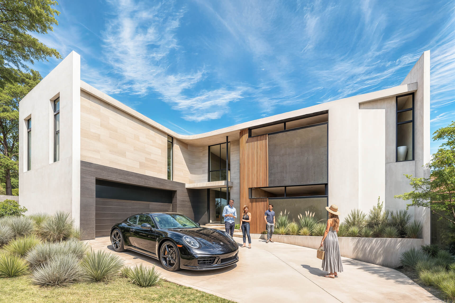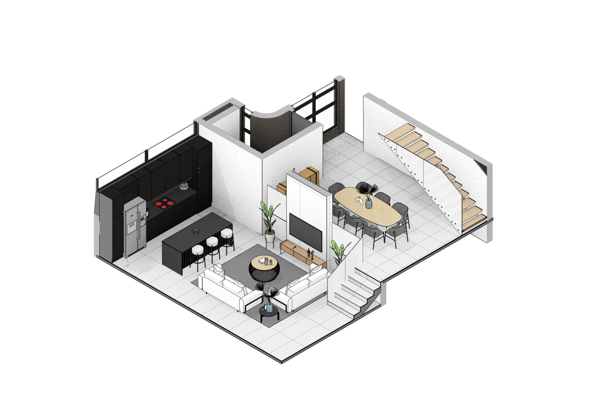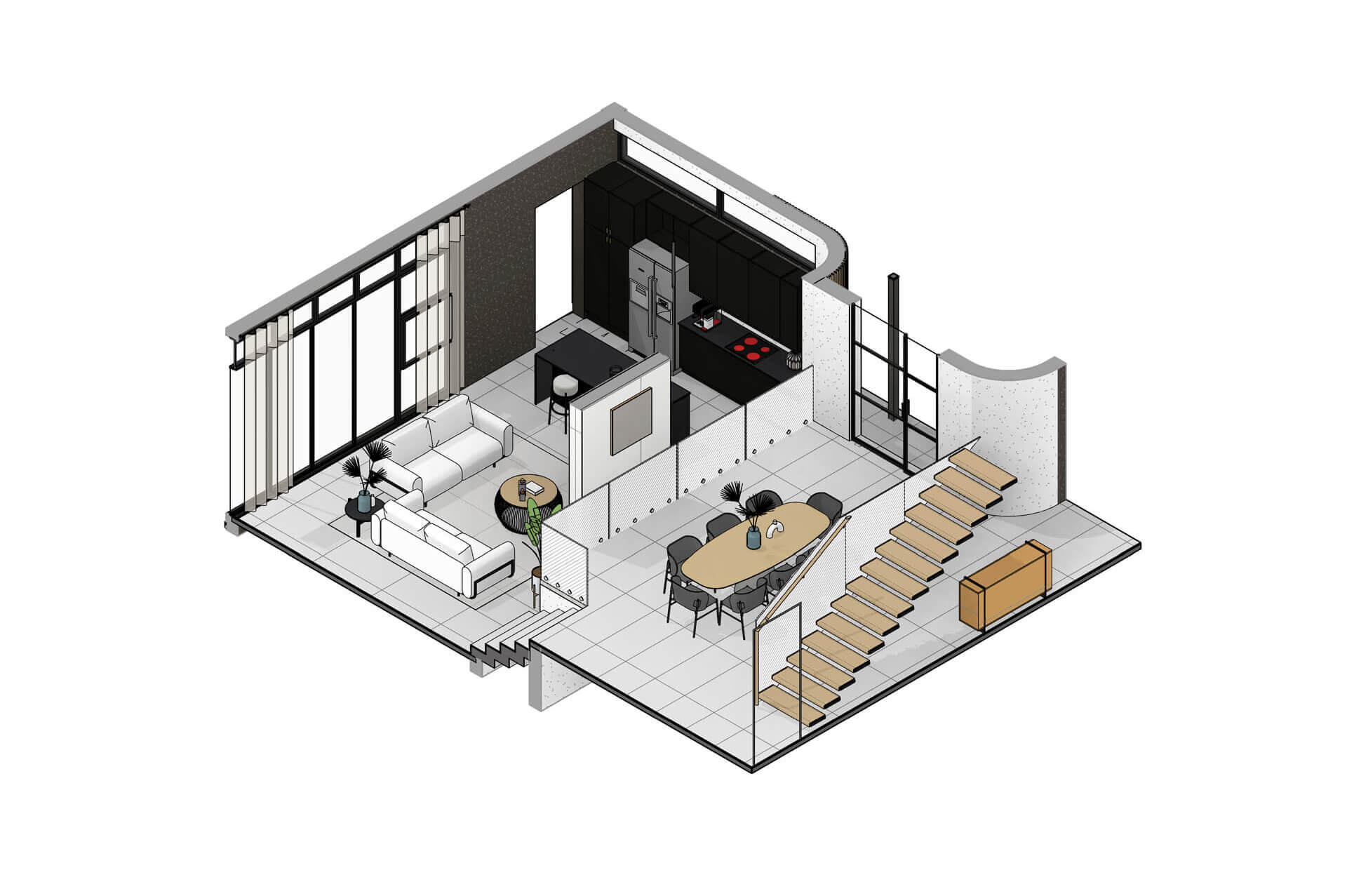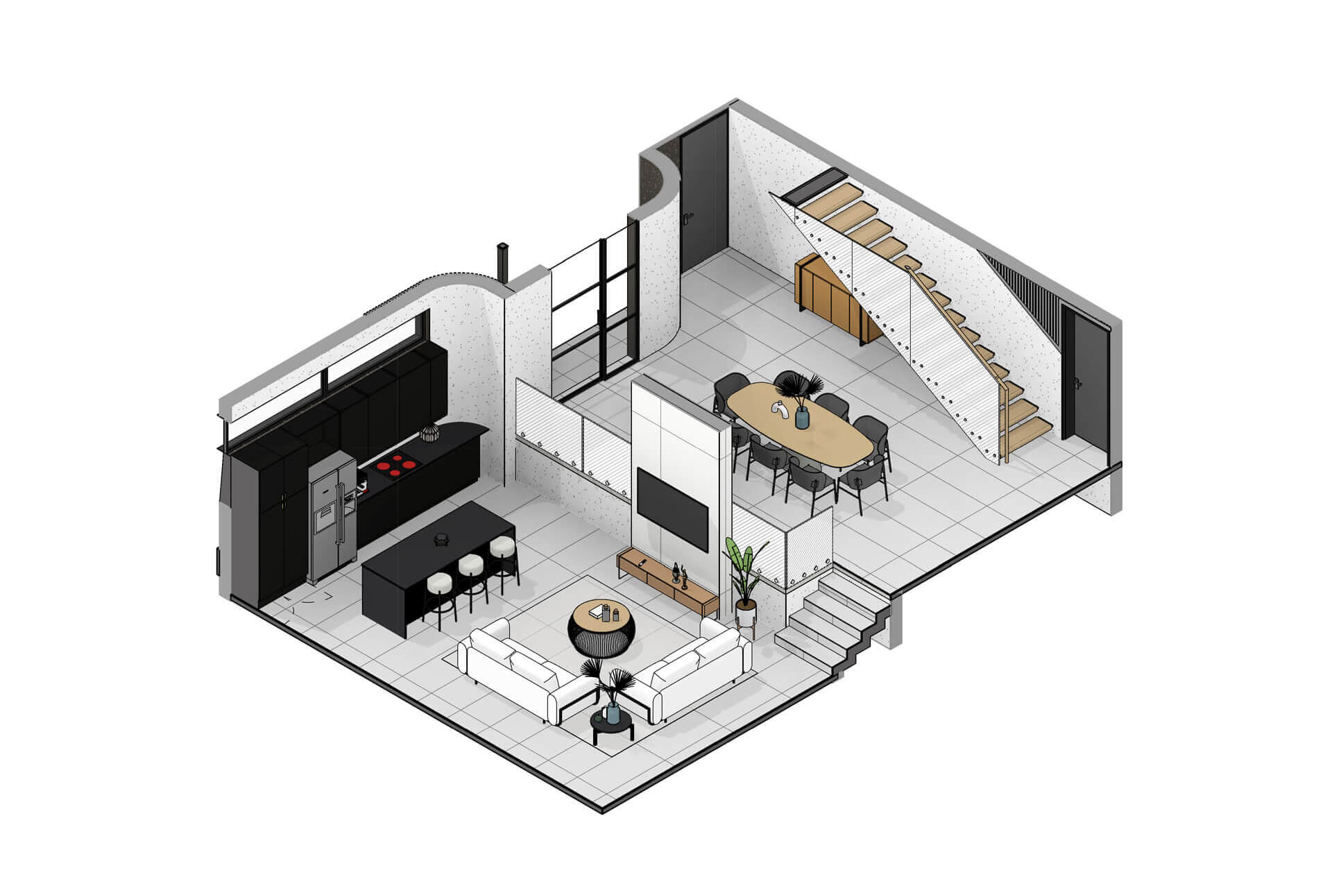 The Solis Type A Residence is a 356m² expression of contemporary estate living within an exclusive eight home full title development in Bryanston. Defined by pure white façades, warm timber accents and textured natural surfaces, the architecture delivers a calm, sculptural presence that feels both modern and timeless. A gentle sweeping curve marks the entrance and continues into the interior, guiding movement and shaping the spatial experience with a soft, continuous flow. Large openings and full height glazing draw northern light into the living spaces and frame generous garden views, with the option of a swimming pool seamlessly integrated into the landscape.